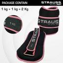 Strauss (1 Kg x 2) Round Shape Ankle Weight | Wrist & Leg Weight, 1Kg Each, Pair Pink, Black Ankle & Wrist Weight (2 kg)