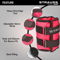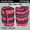 Strauss (2 Kg x 2) Ankle Weight | Wrist & Leg Weights Cuff, 2Kg Each, Pair Pink Ankle & Wrist Weight (4 kg)