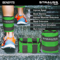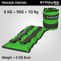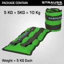 Strauss (5 Kg x 2) Ankle Weight | Wrist & Leg Weights Cuff, 5Kg Each, Pair Green Ankle & Wrist Weight (10 kg)