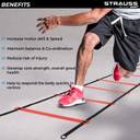 | Key Features | - 6 METER HEAVY DUTY LADDER: Constructed of 6 meter nylon speed ladder with durable plastic rungs for agility and quickness training, Customize Your Workout- All rungs are fully adjustable for your personalized training, you can space them out as wide (or as narrow) as you’d like. And two ladder can be pieced together to get one long agility ladder., Conditioning Equipment: this speed training agility ladder is a ideal tool for all athletes and trainers to improve foot speed, movement control, lateral response, coordination, overall balance and general fitness, BETTER ATHLETIC PERFORMANCE: Ideal for athletic training, football, soccer, basketball drills, hockey, lacrosse, tennis, badminton, rugby to increase acceleration, leg strength, and speed, core skills, balance, rhythm, and body control, A PERFECT GIFT FOR ALL AGES: This agility ladder set makes an excellent gift for your family and friends. Suitable agility ladder for kids, adults, athletes, coaches, sport and fitness lovers.