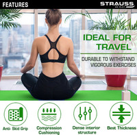 The yoga mat by Strauss features a beneficial layer of cushioning between you and the floor. It provides ideal cushioning and support for your spine, hips, knees, and elbows, especially when you are practising on hard floors. The EVA material used to craft the mat offers a soft and comfortable surface, which reduces pressure on joints during various yoga asanas and exercises. The soft cushioning enhances your overall yoga experience, allowing you to focus on alignment and balance without discomfort.