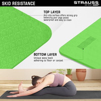 Designed with double-sided non-slip surfaces this yoga mat by Strauss provides you with slip resistance. This ensures that the mat stays firmly in place on the floor, even during vigorous yoga movements or dynamic workouts. The reversible design allows you to choose between two different textures, providing flexibility and variety.