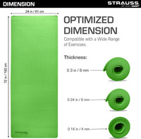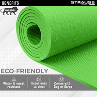Strauss Anti Skid Eco-Friendly TPE Yoga Mat with Carry Strap, Green 4 mm Yoga Mat