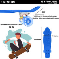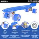 Strauss Cruiser Penny Board with LED Wheels, (Blue) 6 inch x 22 inch Skateboard (Blue, Pack of 1)