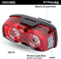 Strauss Dual Led Bicycle Rear Tail Light | Cycle Light | Cycle Back Light LED Rear Break Light (Red)