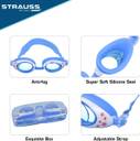 Strauss Kids Adjustable Anti-Fog Swimming Goggle| Unisex UV Protection/LeakProof Silicon Swimming Goggles (Blue, White)