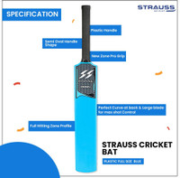 Strauss Rebel , Size SH / Full Size (34 X 4.5 inch) For All Age Groups (Blue) PVC/Plastic Cricket Bat For 15+ Yrs (850-900 g)