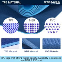 The material used in the making of the Strauss double-layer yoga mat is TPE, which improves its durability, density, and resilience. Hence, even if the shape of the mat gets distorted during the performance of different Asanas, it will readily assume its actual shape without manual effort. The material used considerably reduces the weight of the mat, making it convenient to carry.