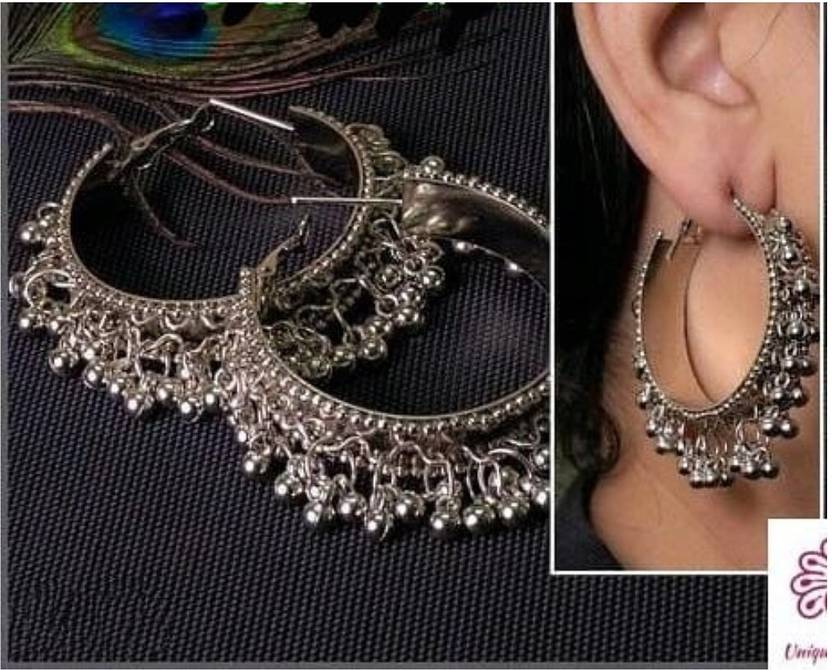 Latest Design Afghani Style Lightweight Black Metal Silver Oxidized Traditional Jhumka/Jhumki Earrings for Women and Girls Metal Jhumki Earring
