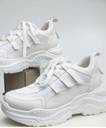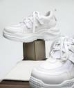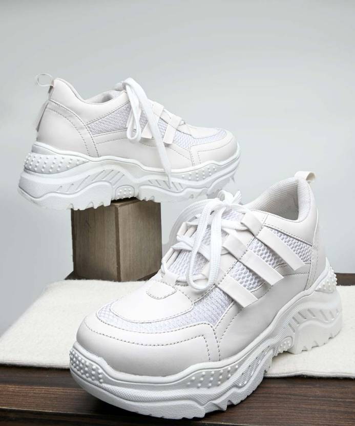 A pair of round toe white sneakers ,has regular styling and lace-ups detail