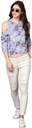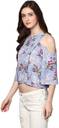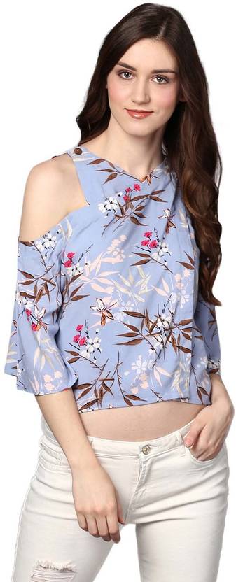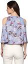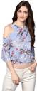 Casual Cold Shoulder Sleeves Floral Print Women Blue Top