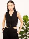 STREET9 Self Design Single Breasted Casual Women Blazer (Black)