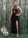 STREET9 Women Fit and Flare Black, Silver Maxi/Full Length Dress