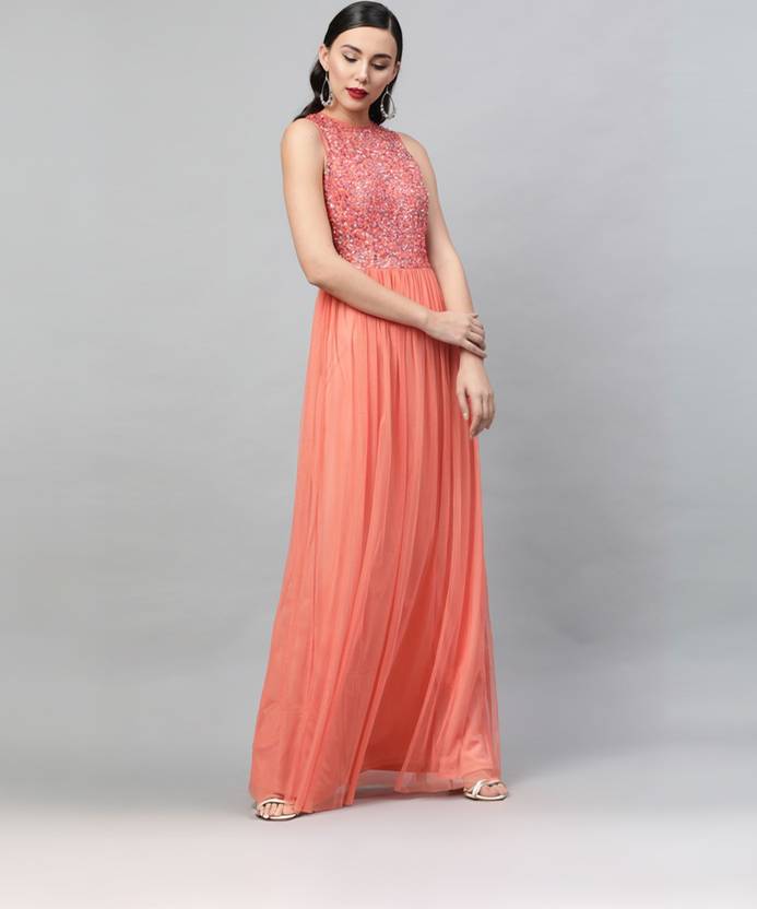 STREET9 Women Fit and Flare Orange Maxi/Full Length Dress