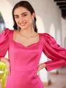 Square Neck Satin Cuffed Sleeves Tulip Sheath Dress