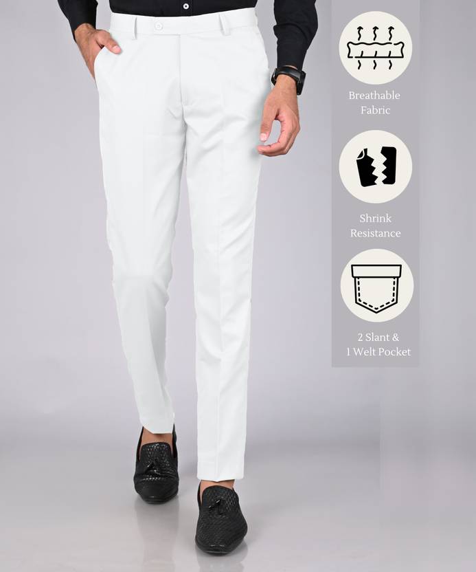 Introducing the STREETVIBES Polycotton Regular Fit Formal Trousers, a sophisticated blend of style, comfort, and professionalism tailored for the modern man. Crafted with precision using premium polycotton fabric, these trousers exude durability and breathability, making them ideal for extended wear during long workdays or formal occasions. The polycotton blend ensures a soft touch against the skin while maintaining a crisp, polished appearance throughout the day. Designed with a regular fit silhouette, these trousers offer a balanced blend of comfort and refinement, allowing for ease of movement without sacrificing elegance. The classic cut and timeless design make them a versatile addition to any wardrobe, effortlessly complementing a variety of dress shirts, blazers, or ties. With meticulous attention to detail, STREETVIBES ensures that these formal trousers are tailored to perfection, featuring thoughtful accents such as belt loops, button closure, and sleek pockets for added functionality and style. Whether you're navigating the boardroom, attending a formal event, or simply seeking a polished look for everyday wear, the STREETVIBES Polycotton Regular Fit Formal Trousers are the epitome of sophistication and professionalism, elevating your ensemble with understated refinement and unmatched comfort.