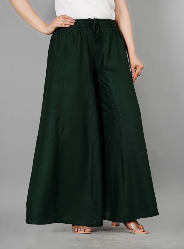 STRICKLIN Women Flared Dark Green Viscose Rayon Trousers