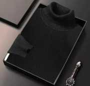Men Solid High Neck Black Sweater