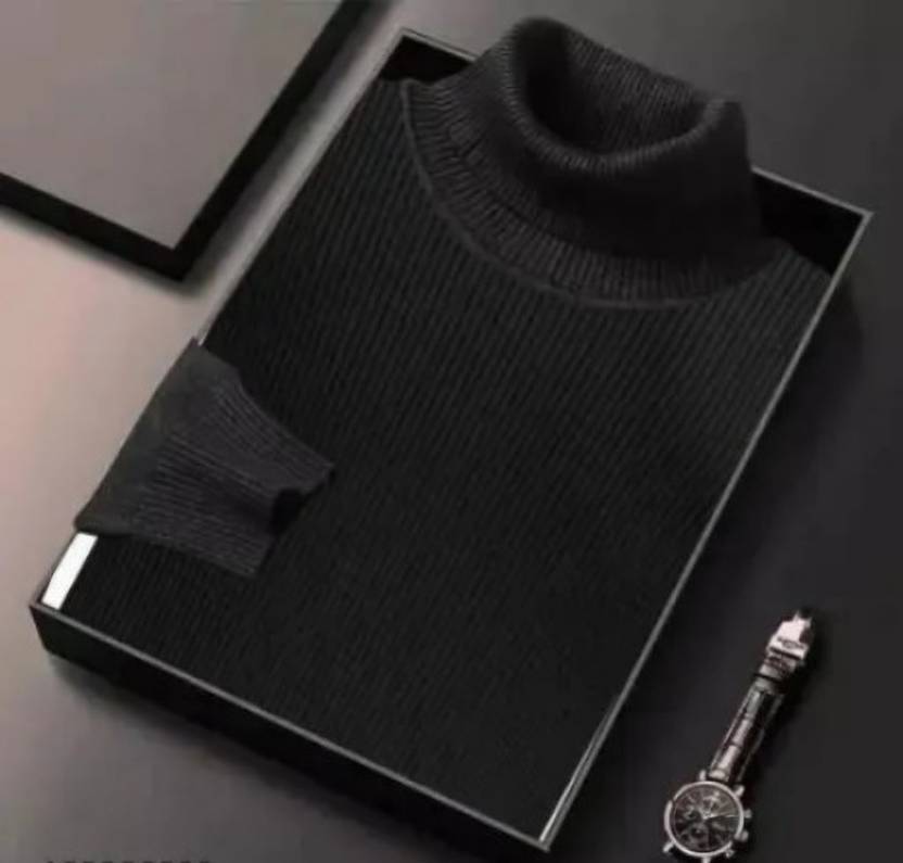 AVA Fashion Solid High Neck Casual Men Black Sweater