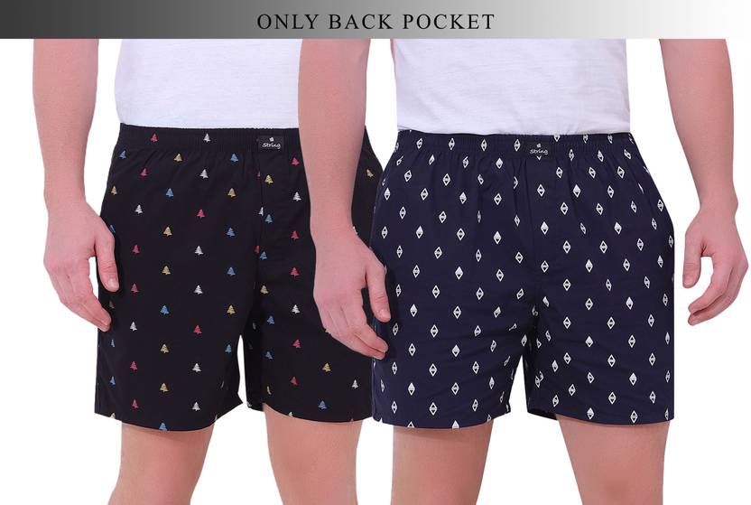 String Printed Men Dark Blue, Black Boxer Shorts