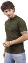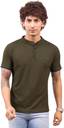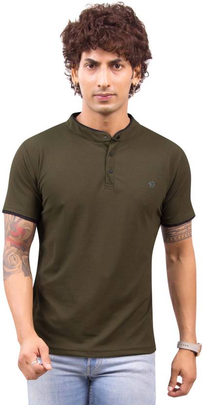 String Men Solid Mandarin Collar Polyester Green T-Shirt
