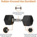 MADE OF:-These Shone rubber coated Hex dumbbells are made of strong cast iron and heavy rubber coated on it.A comfortable rubber grip is coated on the rod of this dumbel.Because the metal rod become hot and cool according to whether.Instead of this some gym lowers don't need a metal grip due to sweating. STRONGABILITY AND DURABILITY- Normaly rubber dumbles are made by welding.Rod are welded with both ends and then rubber is coated on it.But in this dumbell the metal part is one piece.Means,this dumbl is not made by welding.The whole dumbbel is made as a single piece of cast iron and rubber is coated on it. Due to it's unique construction it is strong and durable. LOOK AND SIZE:-This dambal has a unique look.Whole dumbal is black,even it's rod is black(due to grip coated on it).It's sticker has a great colour combination.As you can see in image.And the size is good enough.Both sides of the dambel are bigger.This motivates you for your daily workout. Hex RUBBER COATED-provides a professional look to this dumbbell and rubber protects your floors and makes your exercise noiseless at home gym. DESIGNED FOR-This dumbbell is designed for home gym and commercial use.And everyone can use it.Men,women,boys,girls,experts,beginner all can use it.Even professional body builders, wrestlers use this for their daily basis workout.
