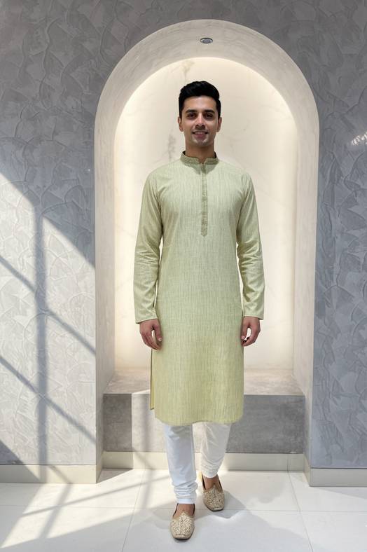 Made with blended fabric for comfort and breathabilityL, Traditional embroidery, patterns, or minimal detailing for a classy ethnic look, Tailored kurta with straight-cut or slim-fit styling for a sharp appearance, Keeps you cool and easy to carry during long events or festive wear, Perfect for Weddings, Receptions, Puja, Diwali, Eid, or Casual Gatherings