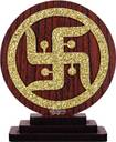 STRYCO Hi-Sparkle WOODEN SWASTIK Car Dashboard Idol | CAR DECOR | GOOD LUCK| PROSPERITY Decorative Showpiece - 8.5 cm (Wood, Brown, Gold)
