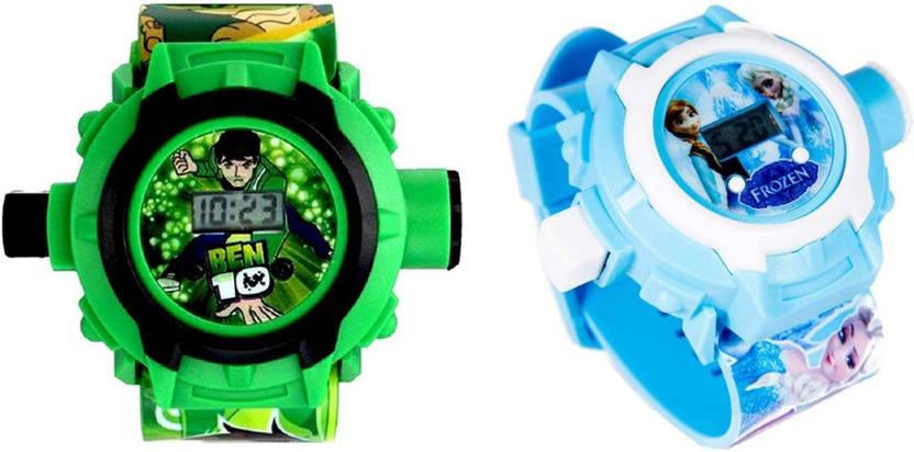 Ben-10 & Frozen 24-Images Digital Display Projector Cartoon Watch for Kids