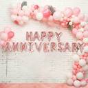 50-Pcs Each of Pink & White Balloons With RoseGold Happy Anniversary Foil Balloon