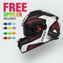 STUDDS Drifter D5 Fiker ISI Certified with Dual Visor & Spoiler Full Face Helmet Helmet Motorbike Helmet (Matt Black, Red)