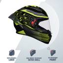 STUDDS Thunder D11 ISI Certified Full Face Graphic with Clear Visor Motorbike Helmet (MATT BLACK / FLUORESCENT YELLOW N5)
