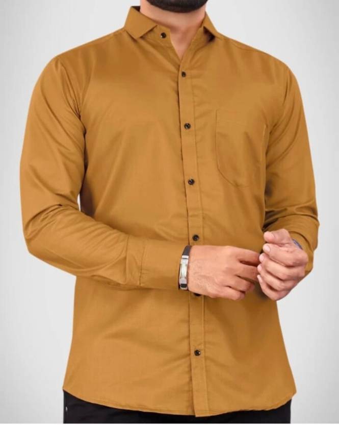 Men Regular Fit Solid Spread Collar Casual Shirt