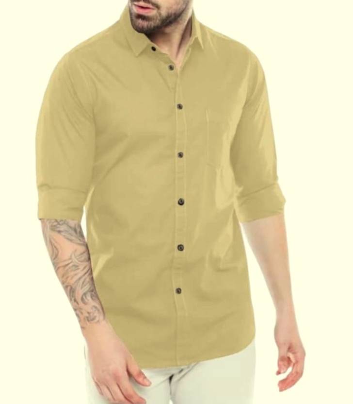 Studio-9 Men Solid Casual Yellow Shirt