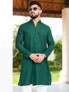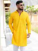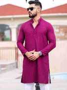 Men's Kurta, Chikenkari Chinese Collar Long Sleeves