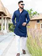 Men Printed Chanderi Straight Kurta (Dark Blue)
