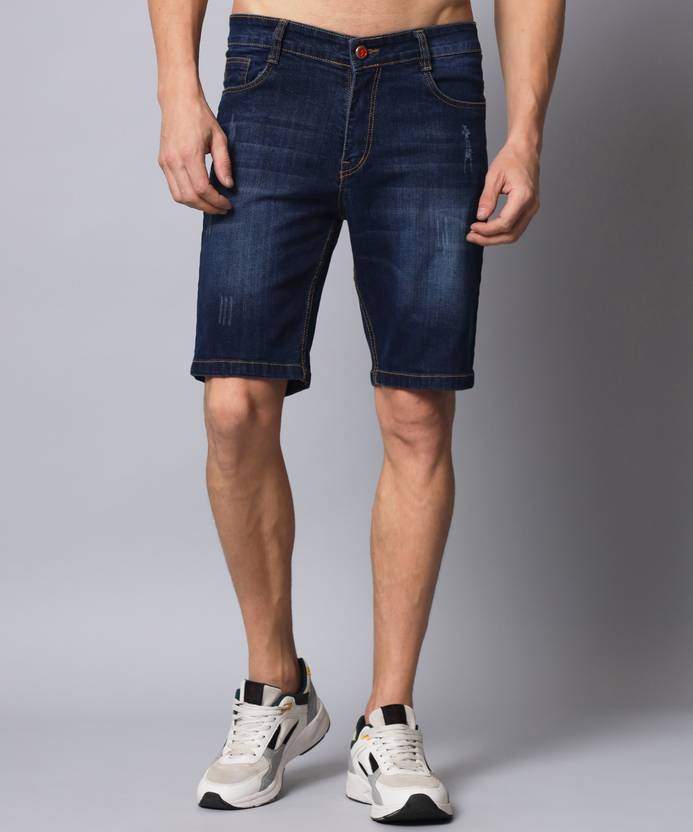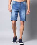 Lycra Blend with Cotton for Superior Comfort, Mild Distressed wash, Fabric - Stretchable, Mid rise Slim Fit; Knee Length denim shorts;