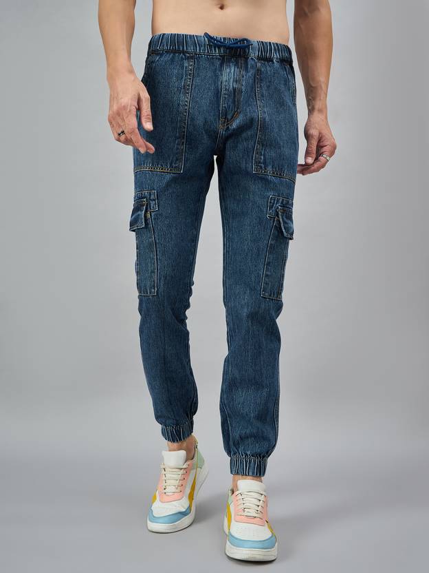 Mid rise Relaxed fit Blue Denim cargo Jogger, good quality fabric from Studio Nexx, Perfect joggers for casual wear & holiday outfits & for travelling. Give your closet a complete makeover with this pair of cargo jogger from Studio Nexx.