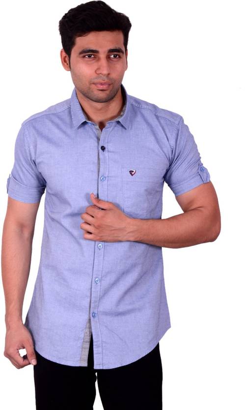 Solid Casual shirt, has a spread collar, full button placket on the front, half sleeves and has contrast overlays on the sides of a curved hemline.