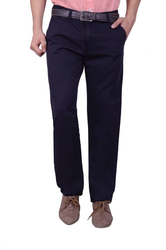 Mid rise Flat Front cotton chinos trouser with a zip fly and button closure, waistband with belt loops, two slant pockets on the front sides,double welted pockets at the back with button closure, brand patch above the right back pocket.