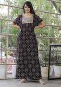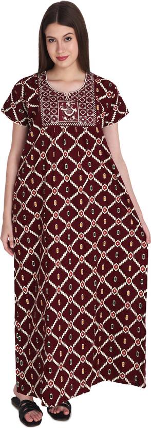 Regular Fit Cotton Nighty: Enjoy a comfortable and relaxed fit with our cotton regular nighty. Height: 55 inches: Provides ample coverage for added comfort during sleep. Size: Free Size (Fit for bust sizes 36" 38", 40", 42" inches): Offers versatility and a flattering fit for various bust sizes. There may be slight variation in color of product photo and product due to lighting. We try to give softest fabric available for nighty with right amount and right description of products