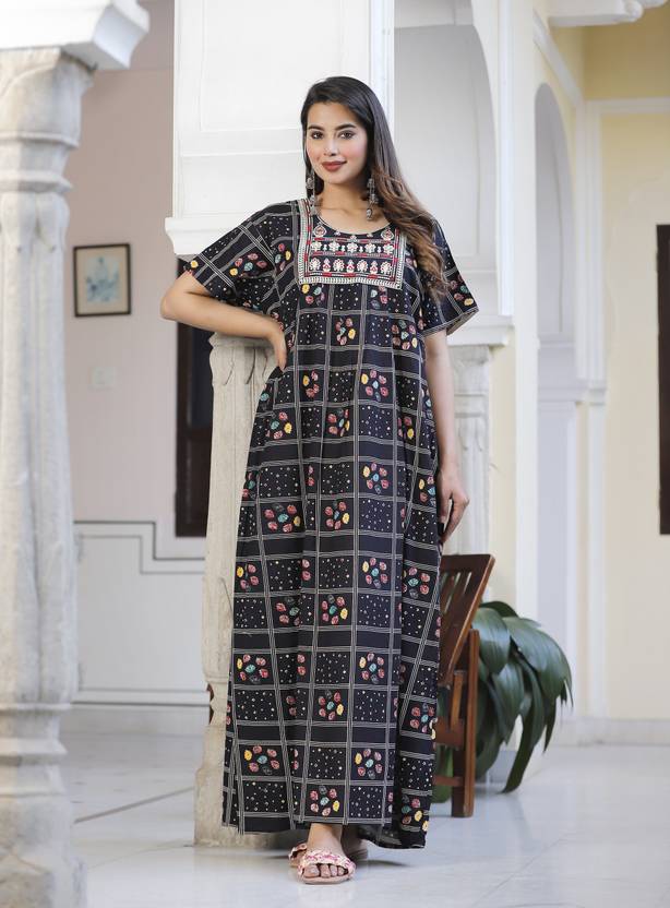Regular Fit Cotton Nighty: Enjoy a comfortable and relaxed fit with our cotton regular nighty. Height: 55 inches: Provides ample coverage for added comfort during sleep. Size: Free Size (Fit for bust sizes 36" 38", 40", 42" inches): Offers versatility and a flattering fit for various bust sizes. There may be slight variation in color of product photo and product due to lighting. We try to give softest fabric available for nighty with right amount and right description of products
