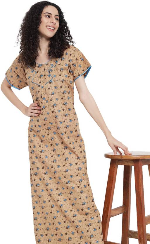 Regular Fit Cotton Nighty: Enjoy a comfortable and relaxed fit with our cotton regular nighty. Height: 55 inches: Provides ample coverage for added comfort during sleep. Size: Free Size (Fit for bust sizes 36" 38", 40", 42" inches): Offers versatility and a flattering fit for various bust sizes. There may be slight variation in color of product photo and product due to lighting. We try to give softest fabric available for nighty with right amount and right description of products