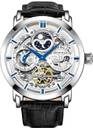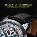Stainless Steel Case on Black Alligator Embossed Genuine Leather Strap, Silver Tone Skeletonized Dial, with Blue Accents
