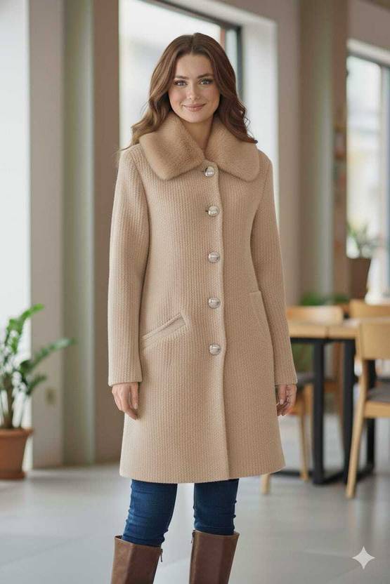 stutakriti presents woolen coat for girls and women. Fur collar neck .its suitable for 32 to 34 bust size free size. very beautiful woolen coat with fur collar.