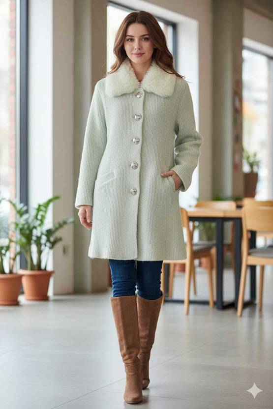 stutakriti presents woolen coat for girls and women. Fur collar neck .its suitable for 32 to 34 bust size free size. very beautiful woolen coat with fur collar.