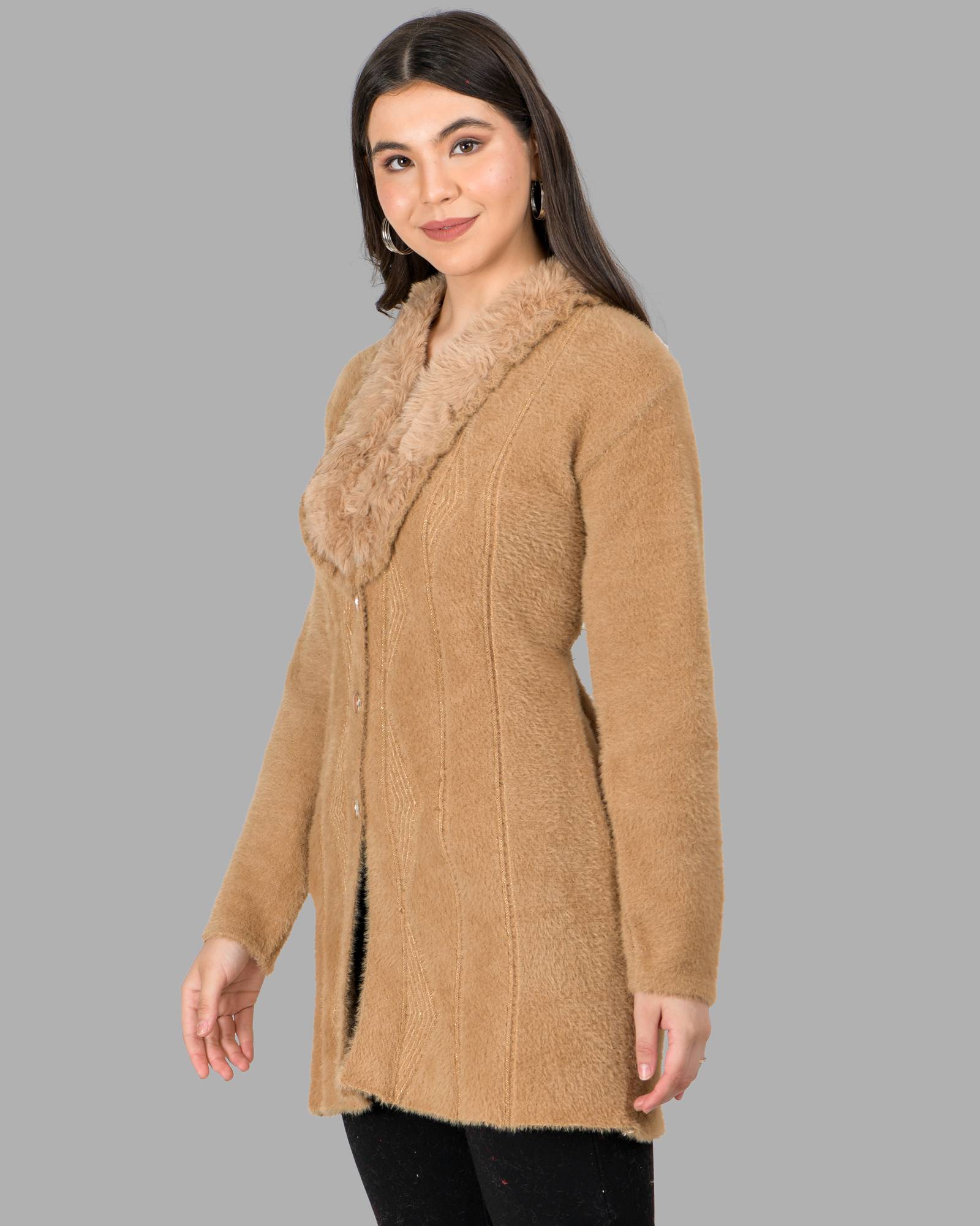 stutakriti presents woolen coat for girls and women. Fur collar neck .its suitable for 32 to 34 bust size free size. very beautiful woolen coat with fur collar.