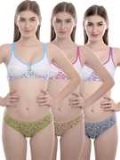 This Bra and Panty Set with non-padded cups for all comfort make your outfit an outmost place of comfort and do not lack style behind by including the combo also from Fashion Comfortz. Made from cotton Lycra Blend, these bras and panties come in beautiful colors.Full coverage, Non-Wired Bra and Mid Wiast Hipster Panty with medium coverage for gorgeous look all day comfort.Crafted with delicate lace with cotton lining for hygenic purpose.