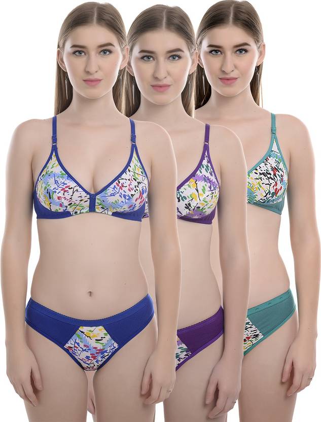 This Bra and Panty Set with non-padded cups for all comfort make your outfit an outmost place of comfort and do not lack style behind by including the combo also from Fashion Comfortz. Made from cotton Lycra Blend, these bras and panties come in beautiful colors.Full coverage, Non-Wired Bra and Mid Wiast Hipster Panty with medium coverage for gorgeous look all day comfort.Crafted with delicate lace with cotton lining for hygenic purpose.