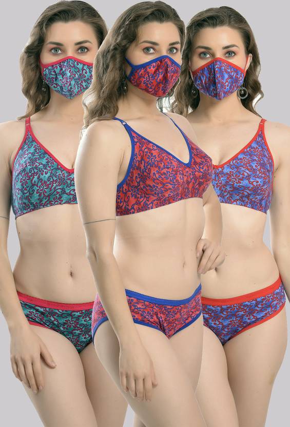 FIMS Bra Panty Set for Female Printed BraPanty Set for Girls Gym Undergarments Sports Lingerie Set for Women Combo pack, 4 way lycra cotton spandex bra panty is a must-have for your everyday lingerie drawer. Crafted from the soft 4 way lycra spandex blend ensures comfort fit and freedom of movement all day long for the woman who appreciates attractive styling but doesn't compromise on ease of wear, fit and hygiene. Fresh vibrant lively colors and romantic design is meant for everyday wear. Its light elastic doesn't leave marks on your skin. This is made of breathable, light fabric to provide best comfort and fit. So, grab this bra panty and add comfort to your style.